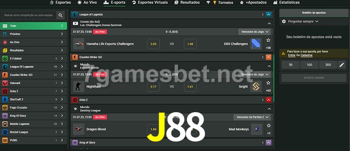 O J88 oferece uma grande seleção de opções de apostas em e-sports com probabilidades competitivas